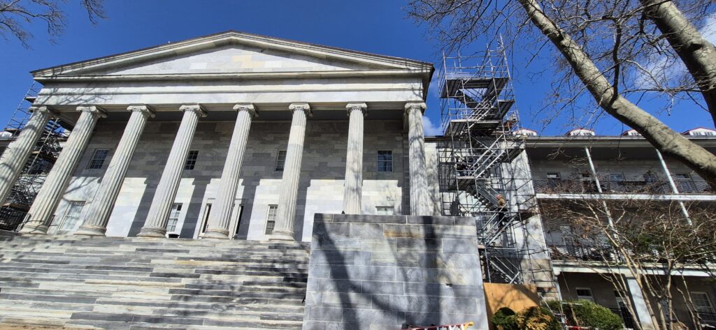 Biddle Hall, an example of Greek Revival Architecture, is the centerpiece structure of Naval Square’s facility erected in the early 19th century. The first of its kind, it was a complex dedicated to the care of Naval and Marine veterans.